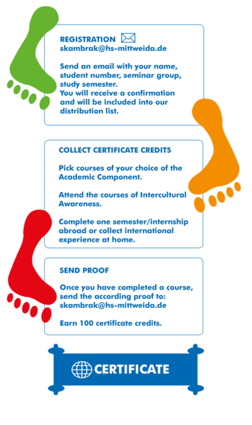 Register now and design your individual Certificate of Intercultural Competence. You can earn certificate credits by attending specialization courses in English and seminars for intercultural competence. In addition, we certify your experience abroad as well as your international commitment. Detailed information